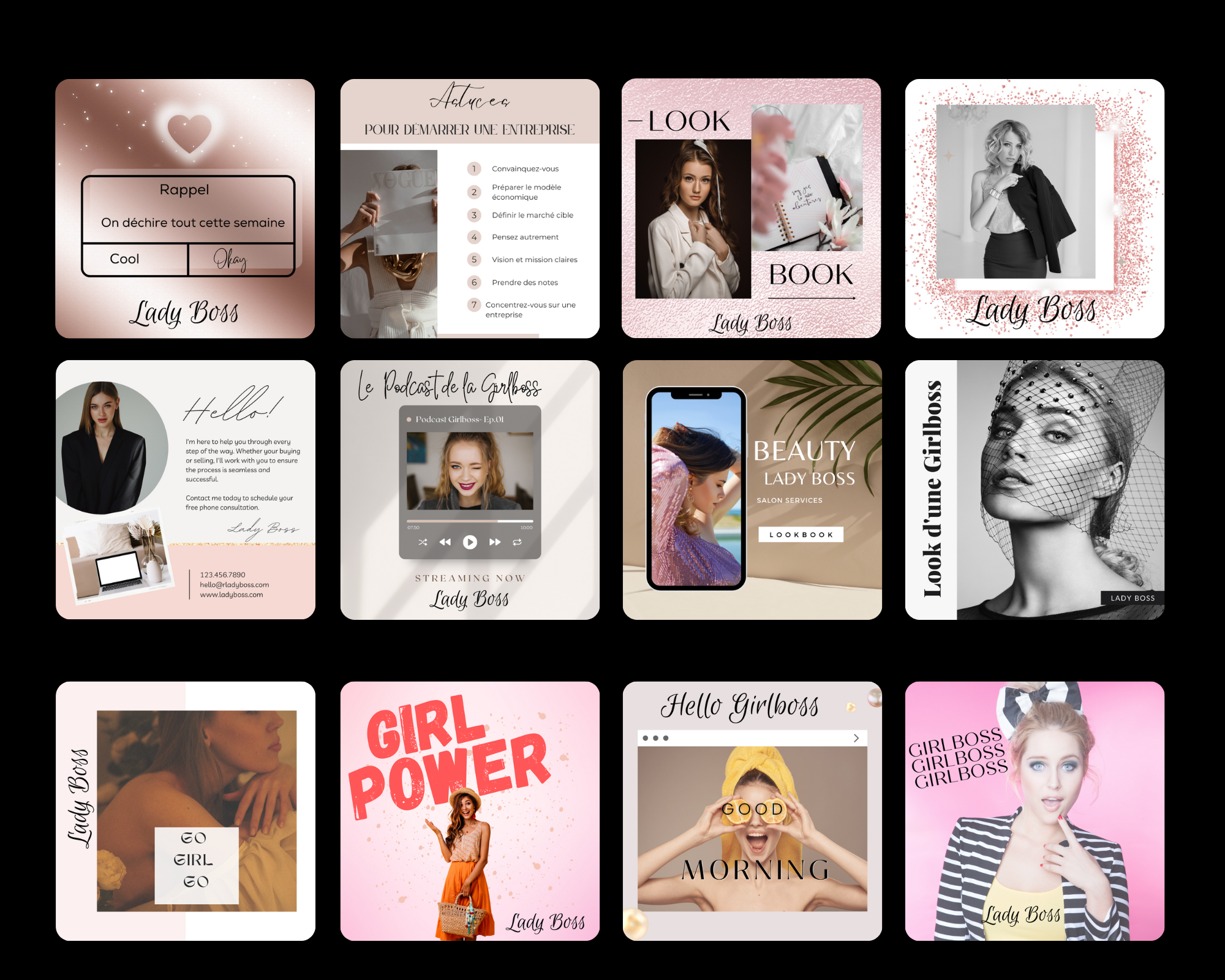 Ces templates ne sont pas juste jolis, ils sont pensés pour faire rayonner votre message, votre voix, votre marque. Car dans ce monde rapide, l’attention se gagne en une seconde. Et vous n’êtes pas là pour passer inaperçue.